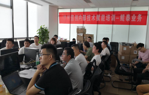 在这疫情特殊的时期,本次技术赋能培训采用了线上线下相结合的授课方式。线上录播的课程,学员们可以反复观看学习,线下的实验课程和考试地点安排在武汉平台,参加培训的学员共40名,分为两批,每批20人。培训的课程内容丰富,辅导扎实,方法灵活。虽然武汉的天气非常炎热,但是无法阻挡大家对学习mg冰球突破(中国)产品知识的热情,没有一名学员请假,更没有出现迟到早退等现象。在下午6点以后,楼内的中央空调就会关闭,教室内20名学员加上样机设备的运行,室温已达到40度以上,大家仍然在教室完成实验课程。全组成员相互研讨,共同学习,共同提高。
