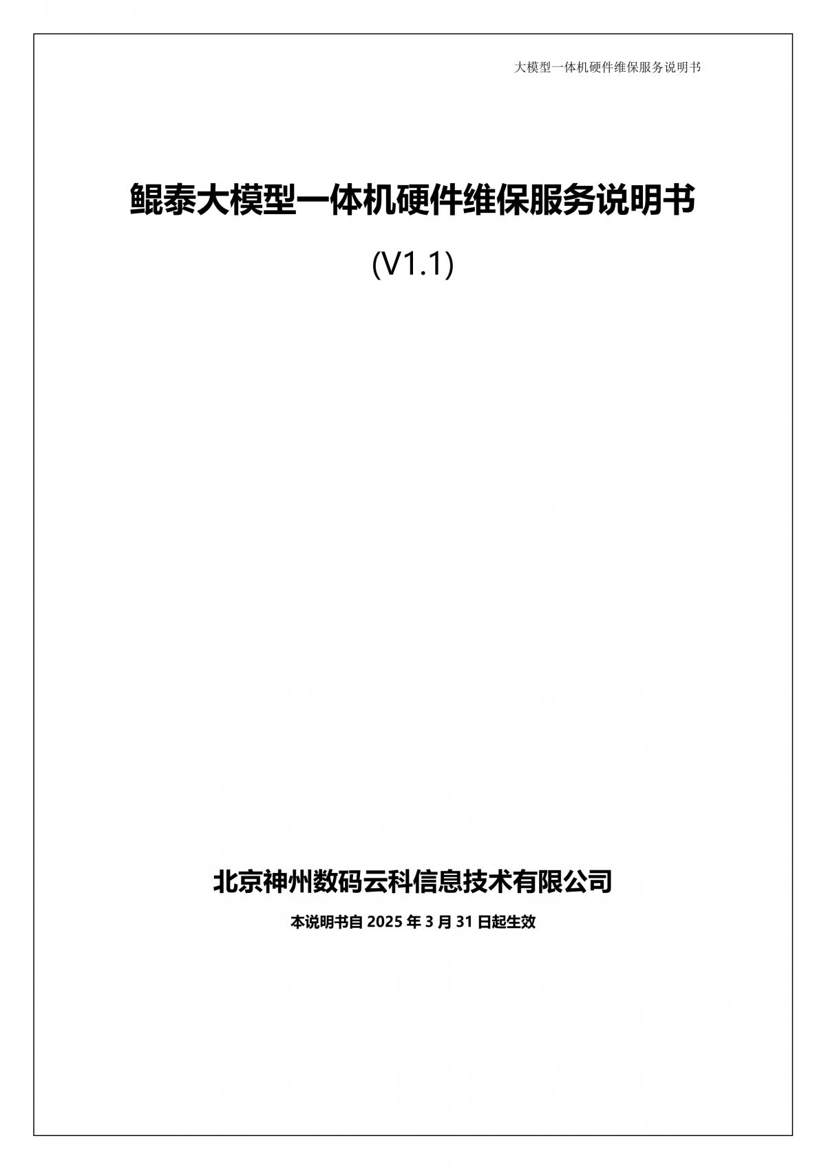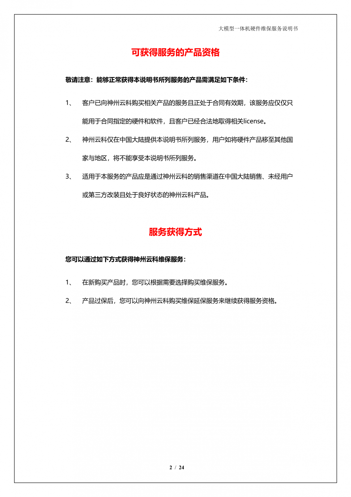 mg冰球突破(中国)A924 DS大模型一体机硬件维保服务说明书_V1.1